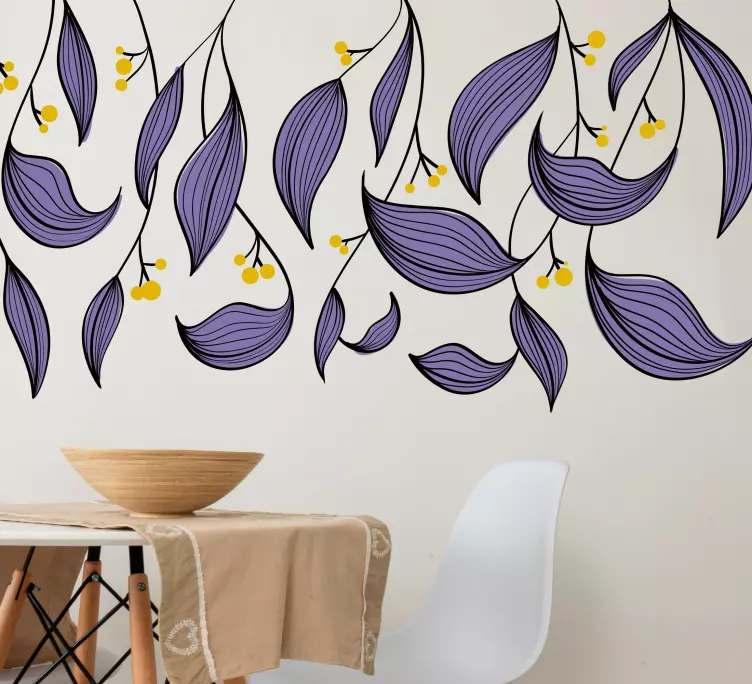La aplicación del vinilo patrón de hojas moradas es muy sencilla. La mejor opción es utilizar cinta adhesiva de doble cara en la parte posterior del vinilo. Alternativamente, puedes enmarcarlo o usar adhesivos más fuertes. Simplemente pega las tiras en la parte posterior y sostén cada tira firmemente durante 10 segundos. También puedes optar por chinchetas o blu-tack reutilizable para una aplicación fácil y rápida.