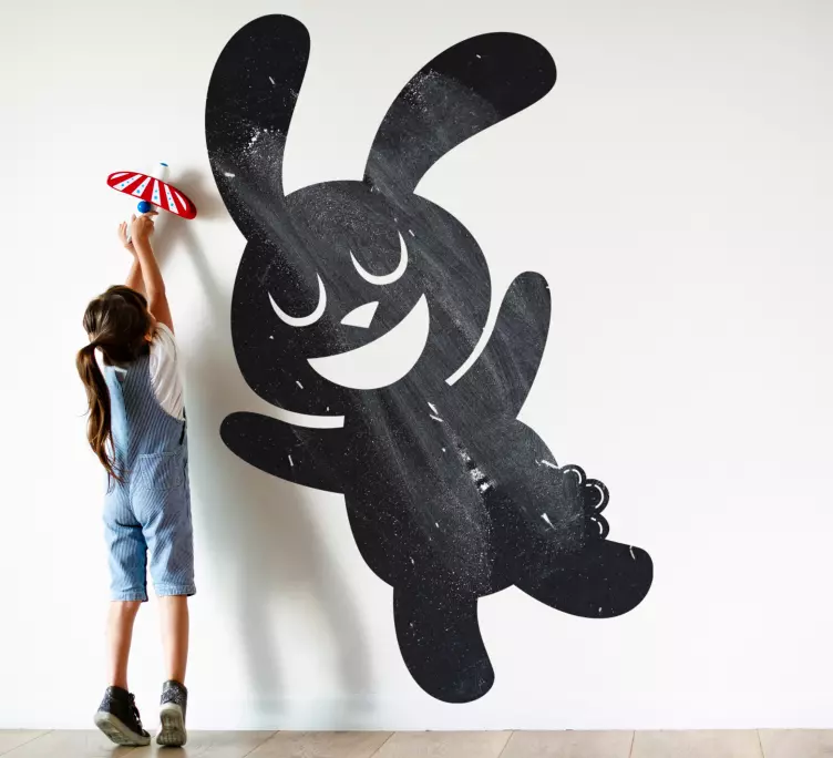 Descubre la alegría de decorar tus espacios con nuestro vinilo pizarra con personaje de conejo alegre. Este encantador adhesivo presenta un conejito feliz, cuya silueta caprichosa y juguetona hará que los niños sonrían cada vez que lo vean. Con un diseño que recuerda a los dibujo animados, este vinilo es perfecto para dar un toque divertido y creativo a cualquier habitación.