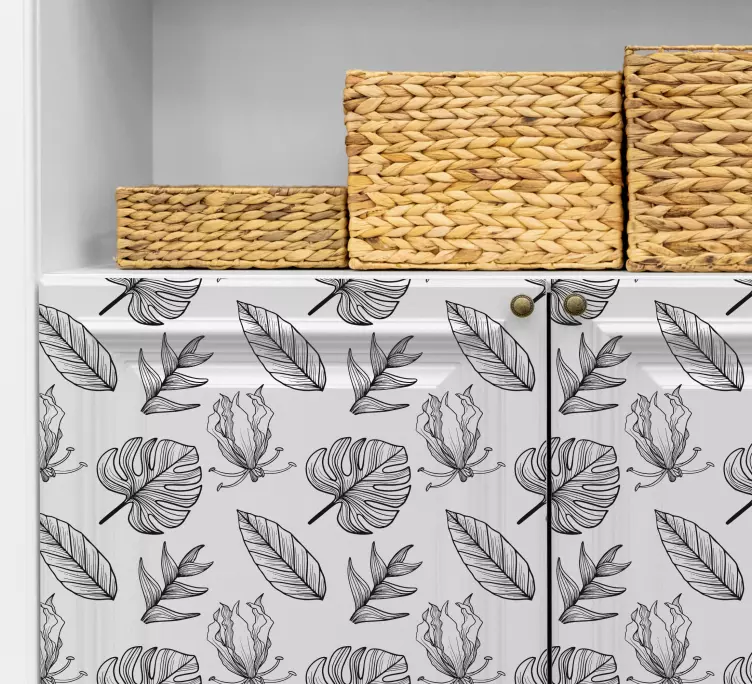 Transforma tu espacio con nuestro Vinilo planta con patrones de hojas verdes, un diseño que evoca la frescura de la naturaleza y la floral estética. Este patrón tropical en blanco y negro es perfecto para dar un toque vibrante a tus muebles y cualquier rincón de tu hogar. Las hojas estilizadas crean un ambiente relajante y lleno de vida que te transportará a un jardín exuberante.
