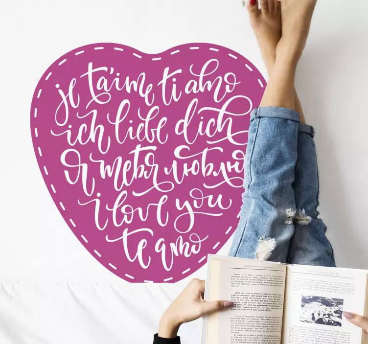 Descubre el Vinilo receta expresiones de amor sincero, una hermosa lámina decorativa que combina un diseño caligráfico con un emotivo corazón y frases en diferentes idiomas. Este producto es perfecto para expresar tus sentimientos más profundos de una forma única y romántica. Su estilo plurilingüe y decorativo lo convierte en un elemento ideal para cualquier espacio, aportando una dosis de amor y sinceridad a tu hogar.
