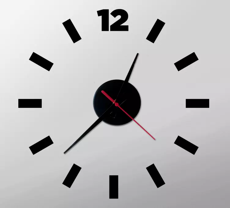 Descubre el vinilo reloj reloj moderno minimalista, un adhesivo decorativo que transforma cualquier pared en una obra de arte contemporánea. Su diseño gráfico incluye un elegante reloj con rayas que marcan las doce horas, todo en un estilo minimalista que combina negro y rojo. Con este diseño moderno, cada mirada a la hora será un deleite visual.