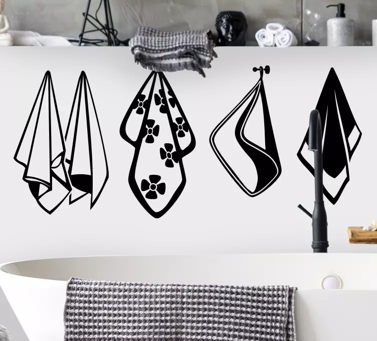 El vinilo soporte elegante para toallas es una obra maestra que combina funcionalidad y estilo. Su diseño presenta toallas en elegantes siluetas, perfectas para adornar cualquier baño. Este producto no solo es una herramienta práctica, sino también un elemento de decoración que eleva la elegancia de tu diseño de interiores, creando un ambiente acogedor y refinado.